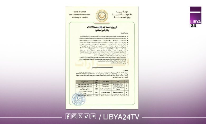 - للاطلاع على الأسماء التي جرى تعينها من خلال موقع وزارة الصحة بالحكومة الليبية عبر الرابط التالي..