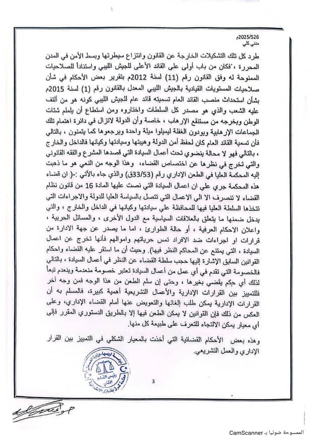 القضاء يرفض الطعن في قرار البرلمان بتعيين قائد عام للجيش