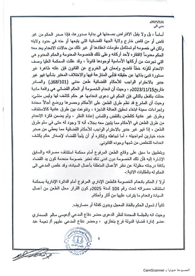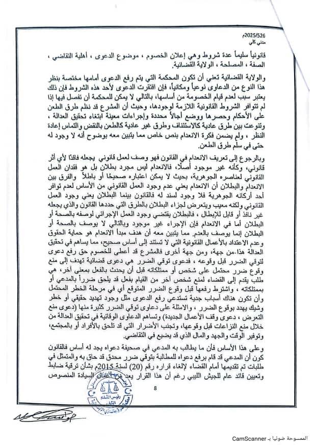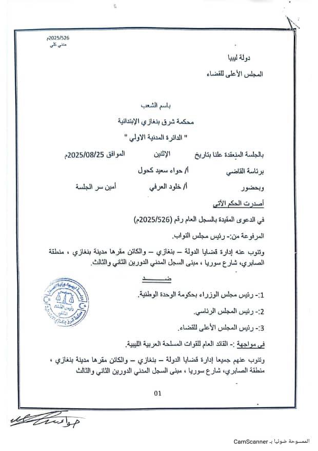قضت محكمة شرق بنغازي، اليوم الثلاثاء، بانعدام الخصومة في الدعوى المرفوعة أمام محكمة استئناف مصراتة بشأن الطعن الإداري المقدم ضد قرار مجلس النواب رقم (20) لسنة 2015، والمتعلق بترقية أحد الضباط وتعيينه قائداً عاماً للجيش .