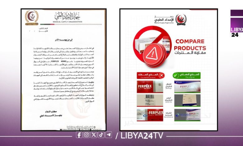 جهاز الإمداد الطبي يُحذّر من دواء FERPLEX 40MG المزوّر في السوق الليبي