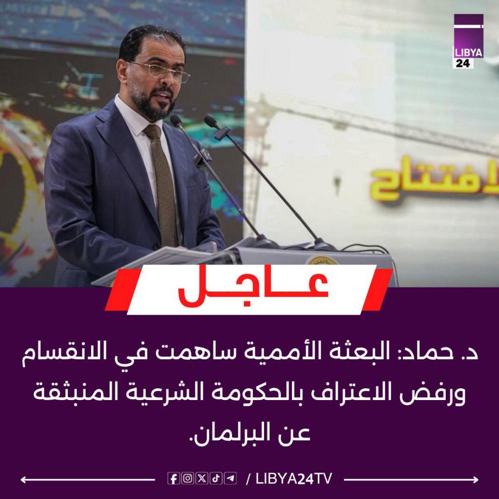 وعلى صعيد الشرعية الدولية، حمّل حماد “بعثة الأمم المتحدة في ليبيا (UNSMIL)” المسؤولية الكبرى عن رفض المجتمع الدولي الاعتراف بحكومته، واتهمها بالمشاركة في تقسيم ليبيا بالتعاون مع دول غربية وعربية وإقليمية.
