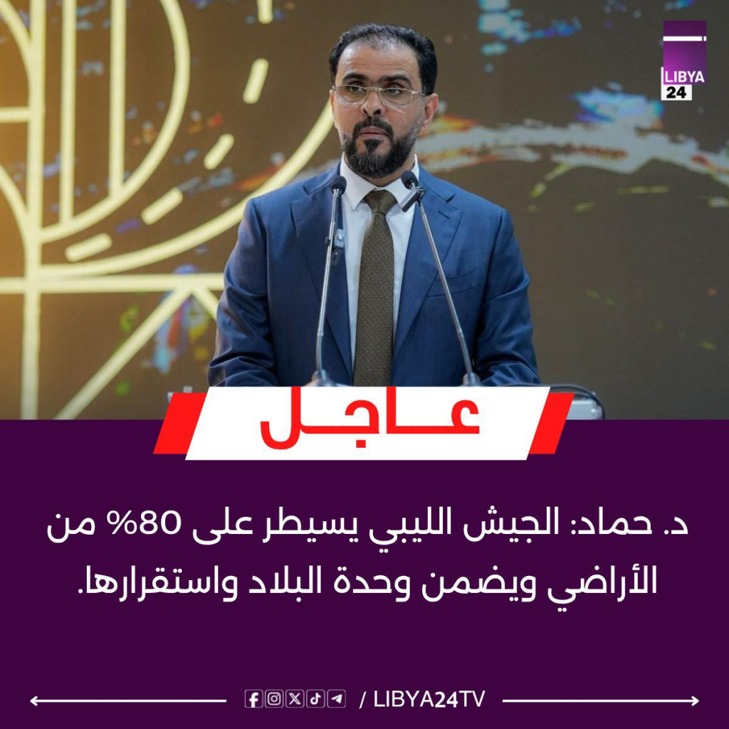 وفي تقييم واقعي لميزان القوى، أكد حماد أن الجيش الليبي يسيطر على حوالي 80% من الأراضي الليبية، بما فيها “كامل الجنوب والشرق ومعظم الغرب”.