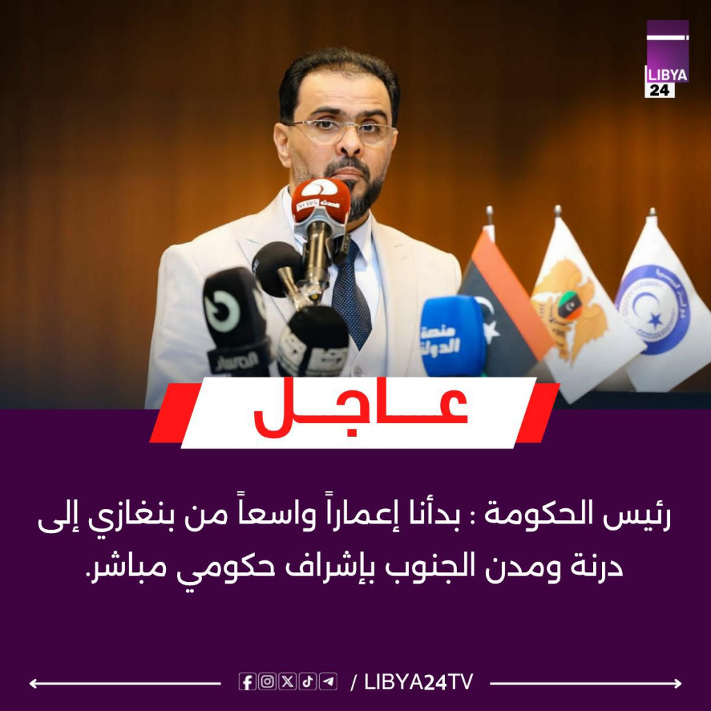 حماد: إعادة إعمار تاريخية لدرنة وبنغازي وتحكم آمن على 80% من ليبيا.