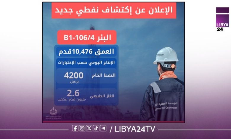 أعلنت المؤسسة الوطنية للنفط عن تحقيق شركة OMV النمساوية المحدودة فرع ليبيا اكتشافًا نفطيًا جديدًا في حوض سرت بمنطقة العقد 106/4، عبر البئر الاستكشافي B1.