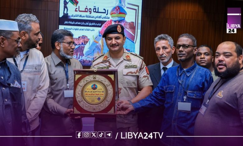 وخلال اللقاء، نقل الفريق أول ركن صدام حفتر تحيات القائد العام للقوات المسلحة، المشير أركان حرب خليفة أبوالقاسم حفتر، وتقديره للدور الوطني الذي تضطلع به قبائل وأهالي سبها في الحفاظ على النسيج الاجتماعي وصون أمن واستقرار الجنوب.
