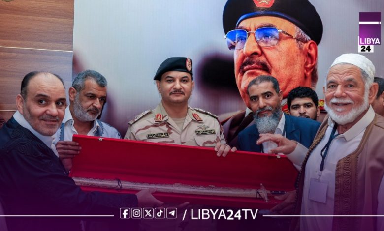 وخلال اللقاء، أعرب مشايخ وأعيان القبيلة عن تقديرهم لجهود القوات المسلحة في حماية الوطن ودعم الأمن والاستقرار، مؤكدين وقوفهم الدائم إلى جانب المؤسسة العسكرية بقيادة المشير أركان حرب خليفة حفتر.