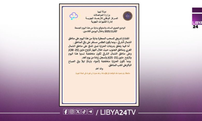 أعلن المركز الوطني للأرصاد الجوية أن السحب الممطرة تبدأ في الانقشاع التدريجي اليوم الجمعة على مناطق الشمال الشرقي، مع استقرار الطقس في باقي أنحاء البلاد.