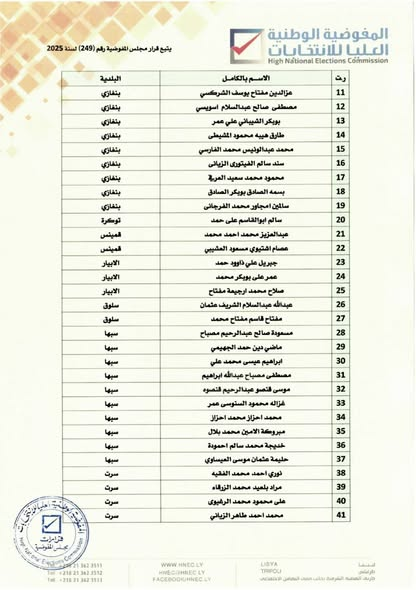 أعلنت المفوضية الوطنية العليا للانتخابات صدور قرار مجلس المفوضية رقم (249) لسنة 2025، والذي يقضي باستبعاد عدد من المرشحين في انتخابات المجالس البلدية ضمن المجموعة الثالثة للعام نفسه، وذلك بسبب انتفاء شرط التزكية الذي يعد أحد أهم الشروط القانونية لقبول ملفات الترشح.