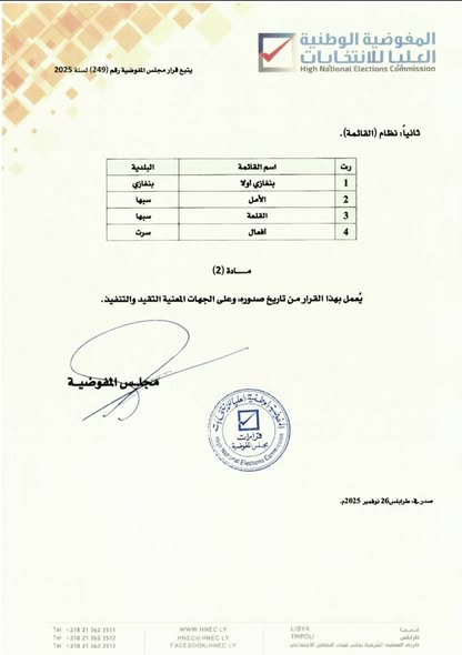 كما يأتي هذا القرار ضمن سلسلة خطوات اتخذتها المفوضية منذ بداية عملية تسجيل المرشحين، في إطار سعيها المستمر لترسيخ مبادئ الحياد والشفافية وضمان نجاح الاستحقاق البلدي.