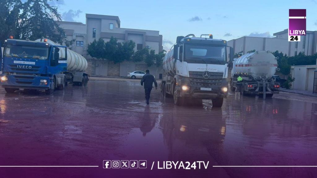 باشرت فرق الطوارئ التابعة لمكاتب الخدمات في كل من مصراتة وبني وليد وزليتن، وبإشراف إدارة التشغيل والصيانة بالمنطقة الوسطى، أعمال فك وشفط مختنقات مياه الأمطار التي خلّفها هطول الغيث النافع على مختلف أنحاء المدينة، وذلك للتخفيف من معاناة المواطنين وضمان انسياب الحركة.