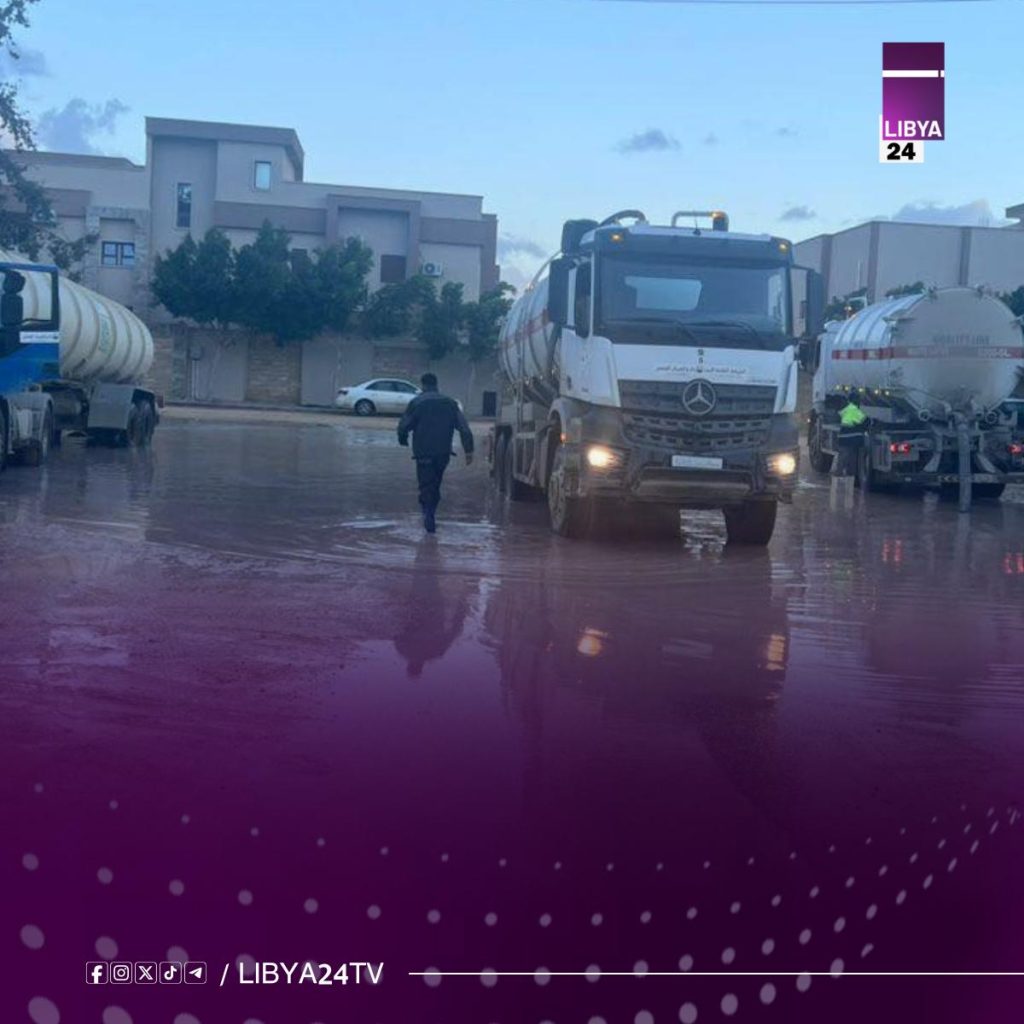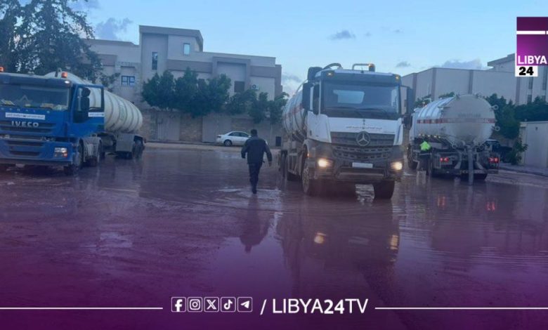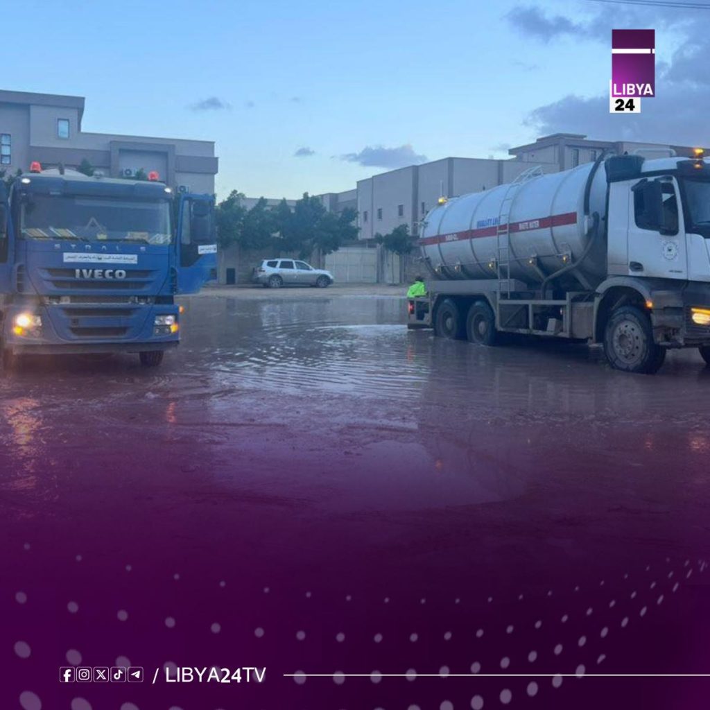 مصراتة.. استمرار تراكمات المياه وفرق الطوارئ تعمل على رفعها