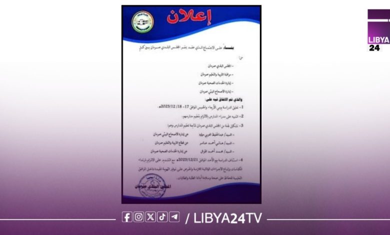 وأوضح المجلس البلدي، في بيان رسمي، أن القرار جاء بناءً على اجتماع موسّع عُقد بمقر المجلس، ناقش الأوضاع الصحية الراهنة وسبل تعزيز الإجراءات الوقائية داخل المدارس، بما يضمن توفير بيئة تعليمية آمنة تتماشى مع المعايير الصحية المعتمدة.