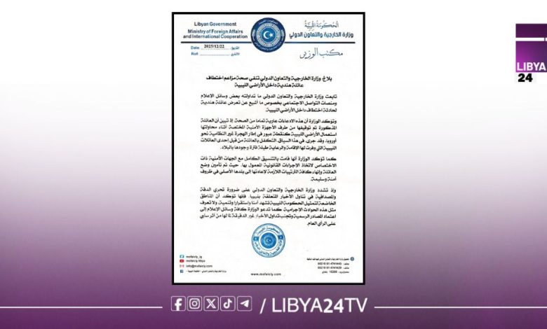 وزارة الخارجية بالحكومة الليبية تنفي اختطاف عائلة هندية وتؤكد سلامتها