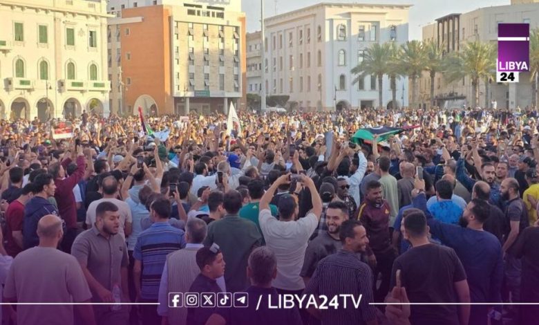 وطالب المتظاهرون بوقف منح الشرعية لما أسموه “حكومات الأمر الواقع”، مؤكدين ضرورة الشروع في مسار واضح يقود إلى تشكيل حكومة وطنية موحدة، تكون مهمتها الأساسية تهيئة البلاد لإجراء انتخابات رئاسية وبرلمانية حرة ونزيهة في أقرب وقت ممكن، بما يعيد السلطة إلى الشعب عبر صناديق الاقتراع.