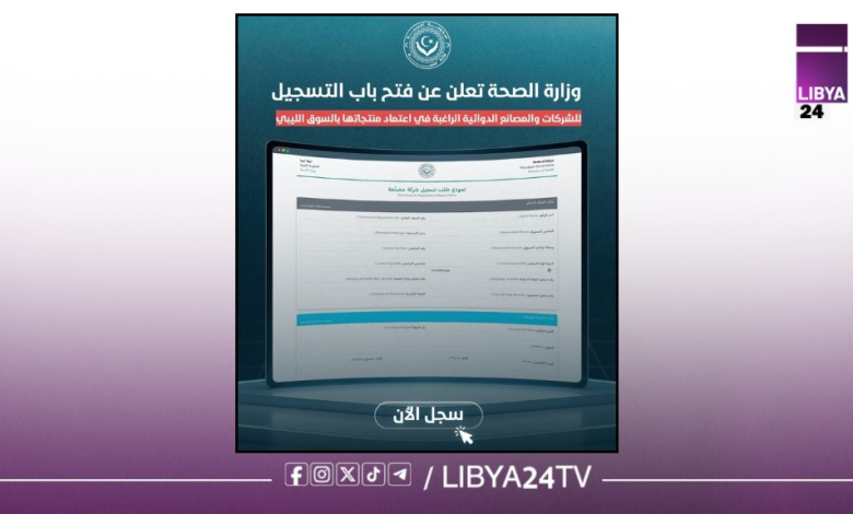 وزارة الصحة بالحكومة الليبية تدعو الشركات للتسجيل كموردي أدوية ومستلزمات طبية في السوق الليبي