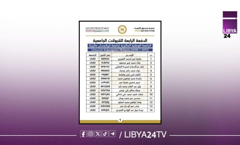 بتعليمات ومتابعة مباشرة من مدير عام صندوق التنمية وإعادة إعمار ليبيا، المهندس بالقاسم خليفة حفتر، أعلنت منصة الصندوق للإيفاد بدء نشر قوائم الطلبة المقبولين للدراسة في الجامعات الماليزية لنيل درجة الماجستير، وذلك بعد استكمالهم متطلبات القبول اللغوي وتحصلهم على قبولات اللغة المعتمدة.