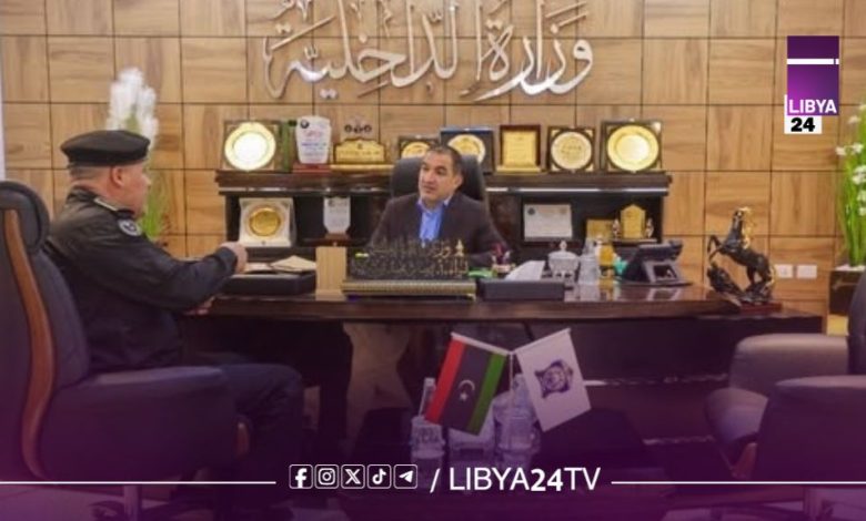تابع وزير الداخلية بالحكومة الليبية اللواء عصام أبوزريبة، مع مدير مديرية أمن مرزق اللواء آدم أمحمد محمد، سير العمل الأمني داخل نطاق المديرية، إلى جانب مناقشة الاحتياجات التي من شأنها دعم الأداء الأمني وتعزيز الاستقرار في المنطقة.