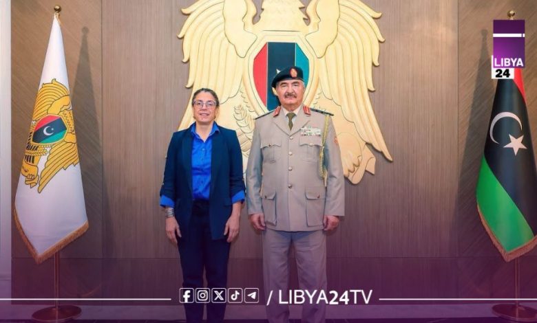 استقبل القائد العام للقوات المسلحة، المشير أركان حرب خليفة حفتر، نائبة رئيس بعثة الأمم المتحدة للشؤون السياسية ستيفاني خوري، بمقر القيادة العامة في بنغازي.