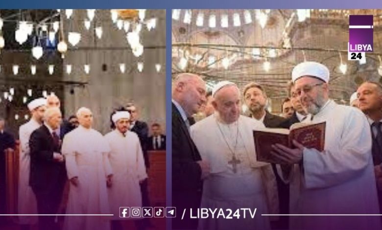 بابا الفاتيكان يخلع حذاءه احتراماً خلال زيارته للمسجد الأزرق في إسطنبول