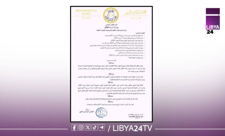 أكمل القراءة »أصدر رئيس المجلس الرئاسي محمد المنفي قرارًا بتجميد قرارات الدبيبة ذات الطابع العسكري أو الأمني في إعادة هيكلة المؤسسات الأمنية…