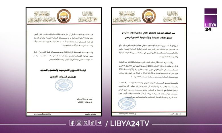 ليبيا 24: أصدرت لجنة الشؤون الخارجية والتعاون الدولي بمجلس النواب بيانًا حذرت فيه من محاولات بعض الجهات غير الشرعية انتحال…