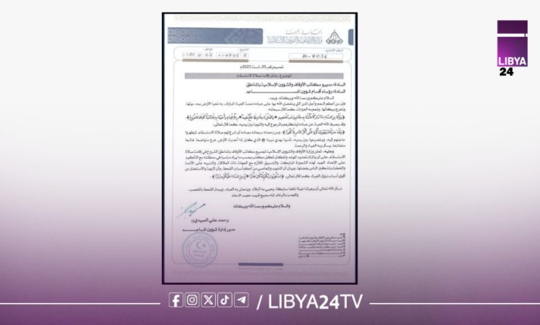 أكمل القراءة »أعلنت إدارة شؤون المساجد بوزارة الأوقاف والشؤون الإسلامية في الحكومة الليبية عن تعميمٍ إلى جميع مكاتب الأوقاف في المدن والمناطق…