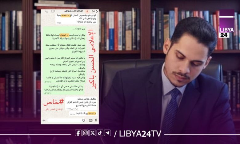 أكمل القراءة »ليبيا 24: نشر الإعلامي الحسن باكير منشور عبر حسابه بفيسبوك تناول فيها ما وصفه بأنها مراسلات مسرّبة تتعلق بجهاز دعم…