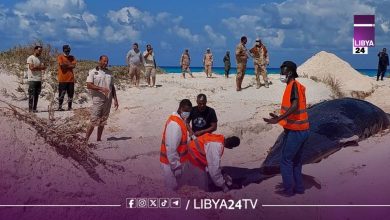 انتشال ودفن 4 حيتان عنبر نافقة غرب أجدابيا
