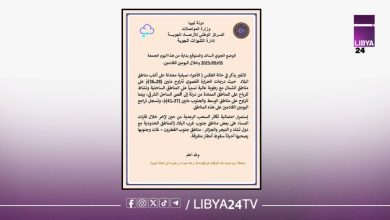 ليبيا 24: أعلن المركز الوطني للأرصاد الجوية عن استقرار الحالة الجوية اليوم الجمعة 5 سبتمبر 2025، وخلال اليومين القادمين، مع…