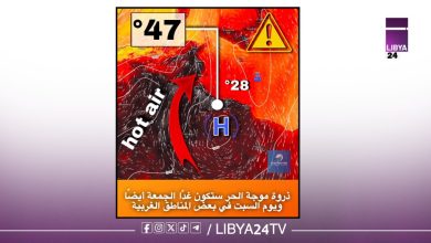 ليبيا 24: توقعت مؤسسة رؤية لعلوم الفضاء وتطبيقاته بأن تقترب موجة الحر التي تضرب المناطق الغربية من ليبيا من نهايتها،…