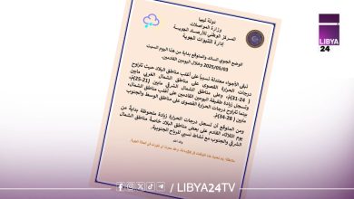 ليبيا 24: يتوقع المركز الوطني للأرصاد الجوية أن تستمر الأجواء معتدلة نسبياً في معظم مناطق البلاد، حيث تتراوح درجات الحرارة…