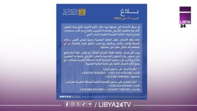 ليبيا 24: في ظل التطورات التي تشهدها ليبيا في الأيام الأخيرة، أكدت وزارة الشؤون الخارجية والتعاون الإفريقي والمغاربة المقيمين بالخارج…