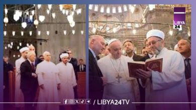 بابا الفاتيكان يخلع حذاءه احتراماً خلال زيارته للمسجد الأزرق في إسطنبول