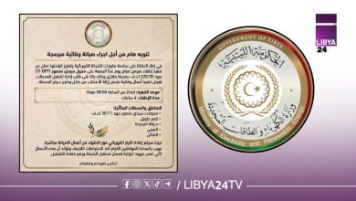 ليبيا 24: أعلنت وزارة الكهرباء والطاقات المتجددة بالحكومة الليبية، عن تنفيذ إطفاء مبرمج صباح يوم الجمعة في مدينة بنغازي، وذلك…
